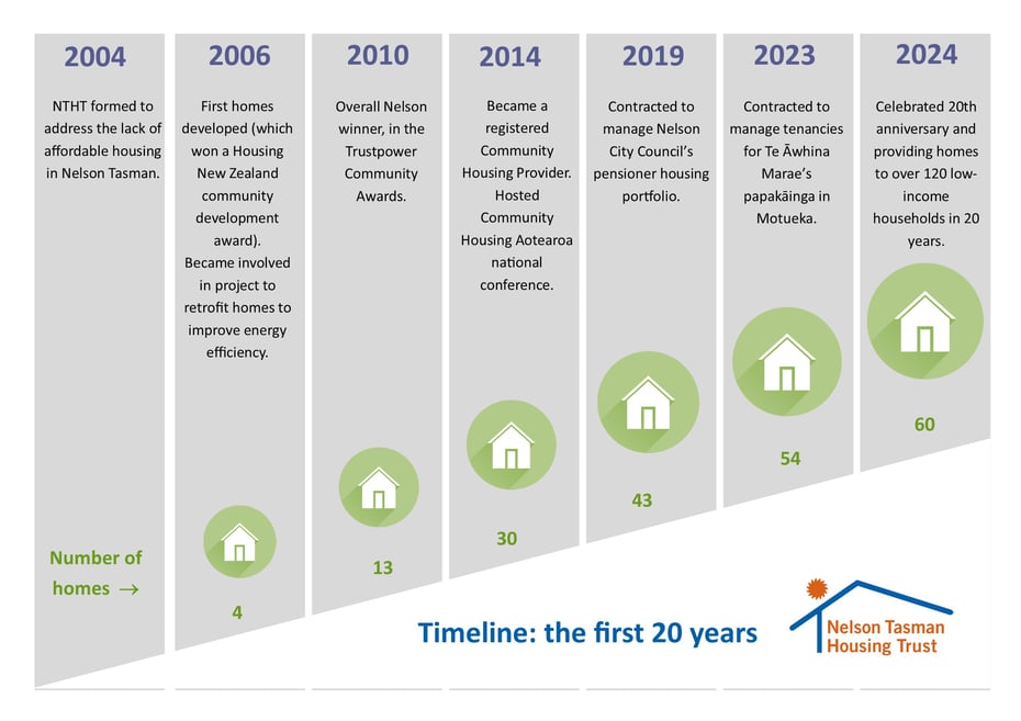 The Nelson Tasman Housing Trust was established in 2004 as a community response to the housing crisis in Nelson and Tasman. Our aim has always been to increase the supply of quality, affordable,